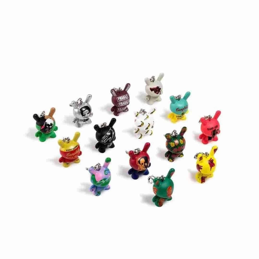 Andy Warhol’s work has gone micro-sized! Kidrobot and The Andy Warhol Foundation are proud to present Warhol’s iconic designs on an all new Dunny size in the Andy Warhol Dunny Keychain Series. This series features the same designs as the Andy Warhol Dunny Series 2.0, creating a perfect 1.5” compliment to your Andy Warhol Dunny collection. Coming with a lobster clasp on a detachable ring perfect for adding a pop culture accent to any zipper, backpack, purse, set of keys or even statement DIY jewelry piece! Collect them all today before their 15 minutes of fame run out!