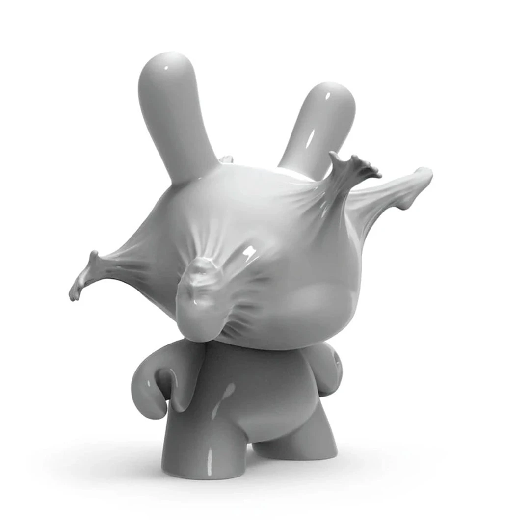 This collaboration between Kidrobot and London-based artist Whatshisname uses the canvas of the Dunny to explore the struggle between the parts of our identity imposed by the outside world and our desire to be our authentic selves. This empowering 8-inch resin figure shows a person pressing back against the strictures of the world and in the process of emerging as themselves.