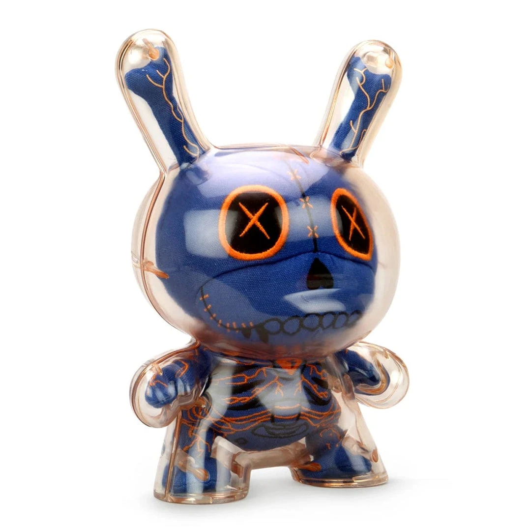 Gashadokuro, a Japanese word which translates to “starving skeleton,” are mythological creatures from Japanese culture that are believed to be the spirits of people who starved to death or who died in battle but were not given proper burials. This 8” Dunny with its X’d out eyes that indicate death in the cartoon world and it’s plush broken heart, visible from within the figure’s clear shell, hint at a tragic ending for this mortal’s life, now trapped in the form of a Dunny with a plush body and an embroidered circulatory system. The new Gashadokuro 8″ Plush Guts Dunny Art Figure – Midnight Edition is the perfect conversation piece, or for your ever-expanding Dunny collection. Coming 2021 from Kidrobot.