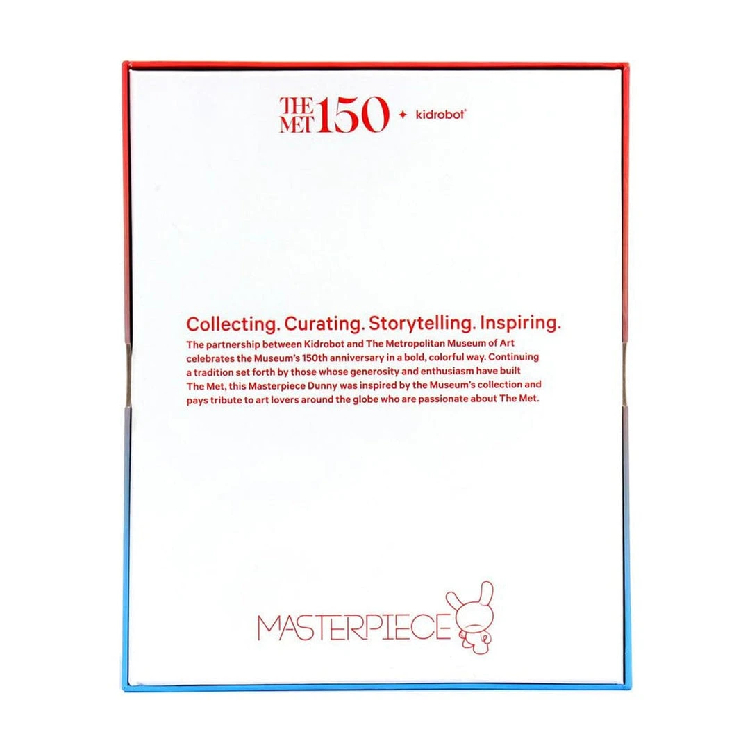The partnership between Kidrobot and The Metropolitan Museum of Art marks the Museum’s 150th anniversary in a bold, colorful way. Continuing a tradition set forth by those whose generosity and enthusiasm have built The Met, this 8-inch Masterpiece Dunny was inspired by the Museum’s permanent collection and pays tribute to art lovers around the globe who are passionate about The Met.
