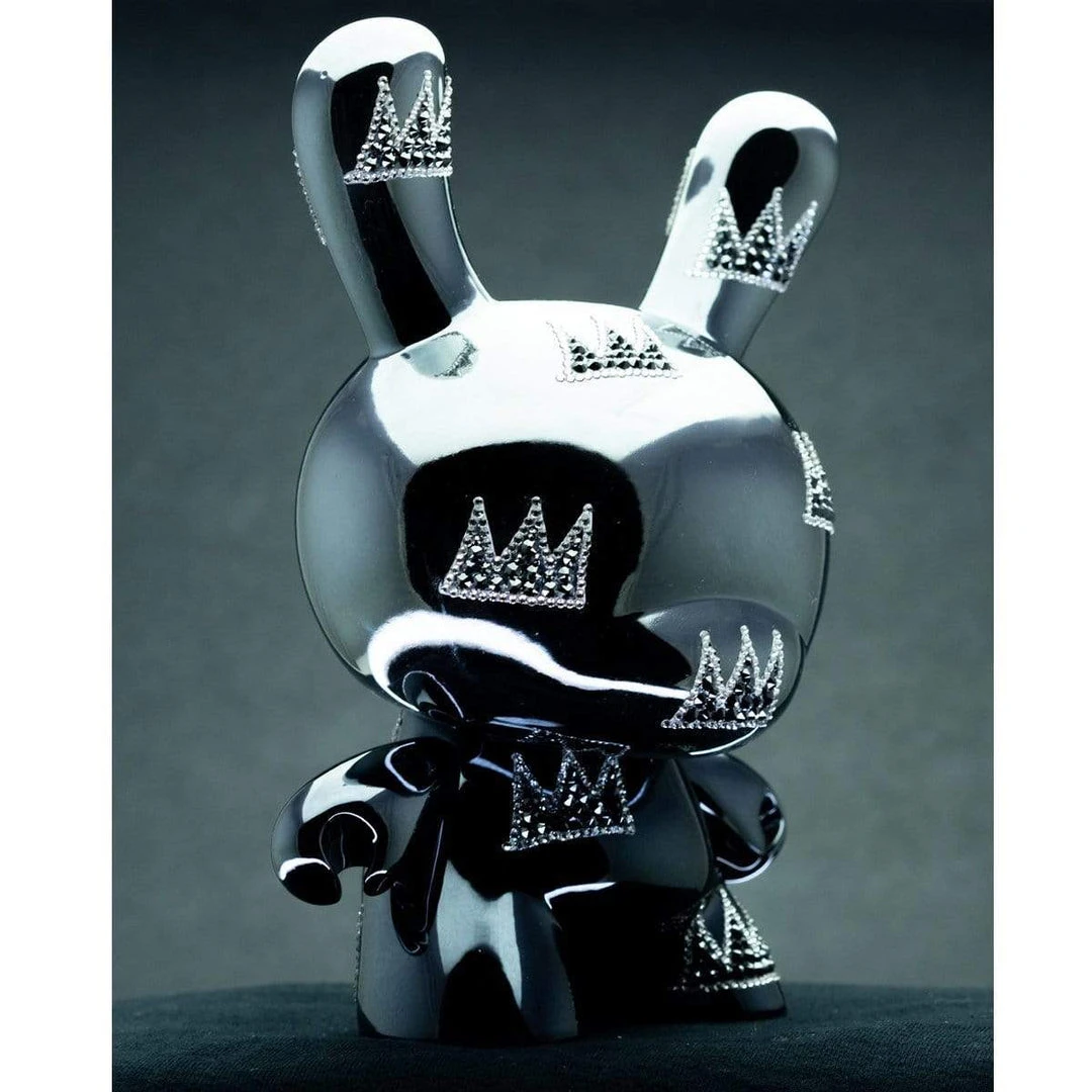 Jean Michel Basquiat one of the best-known and monumental artists of the 20th Century who elevated street art to a place before unseen. This new 8” Basquiat Masterpiece Dunny comes with a black metal chrome finish and is adorned with iconic Basquiat crowns: a symbol of royalty, of hierarchy and a recognizable emblem of the young, self-taught artist who stood for more than standard gallery art.