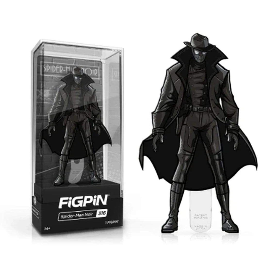 Based on the hit film Spider-Man: Into the Spider-Verse, Spider-Man Noir flings into the FiGPiN series—followed by Spider-Gwen, the Spider-Men Miles Morales and Peter Parker, Spider-Ham, Peni Parker, and the evil Kingpin!