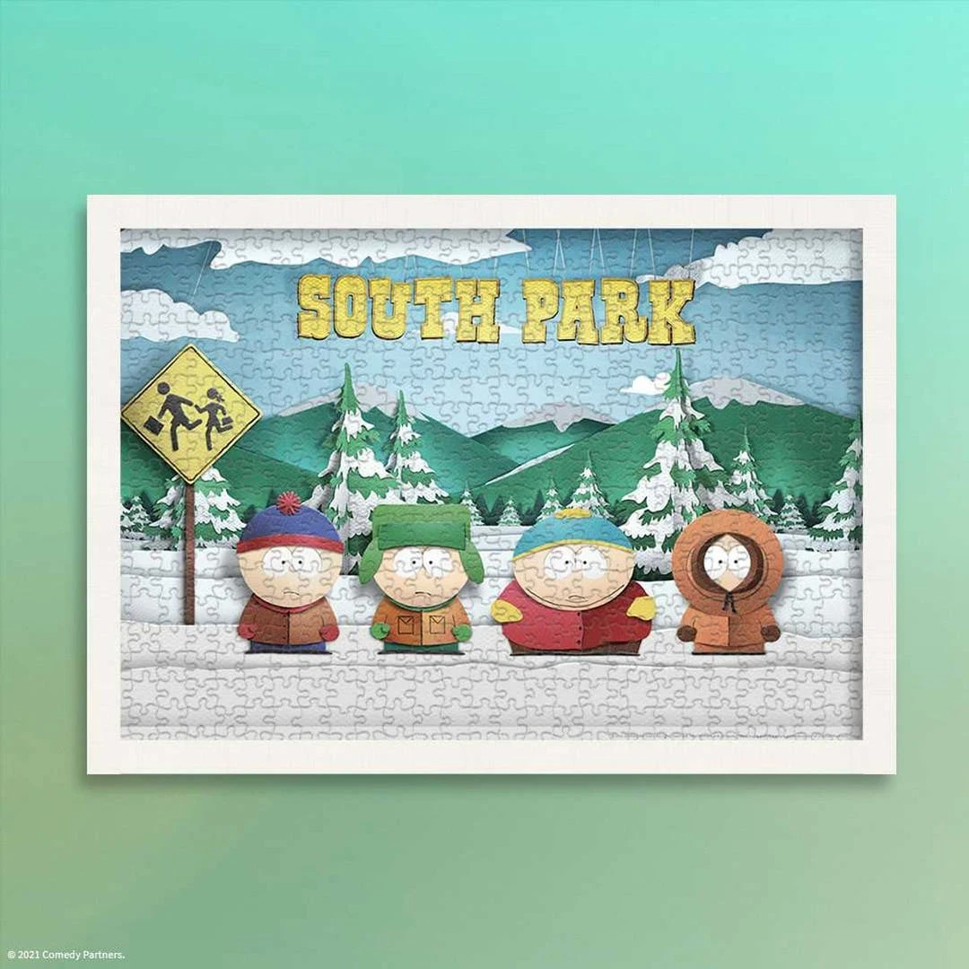 Piece together this collectible jigsaw puzzle featuring Stan Marsh, Kyle Broflovski, Eric Carman, and Kenny McCormick from Comedy Central’s South Park show.