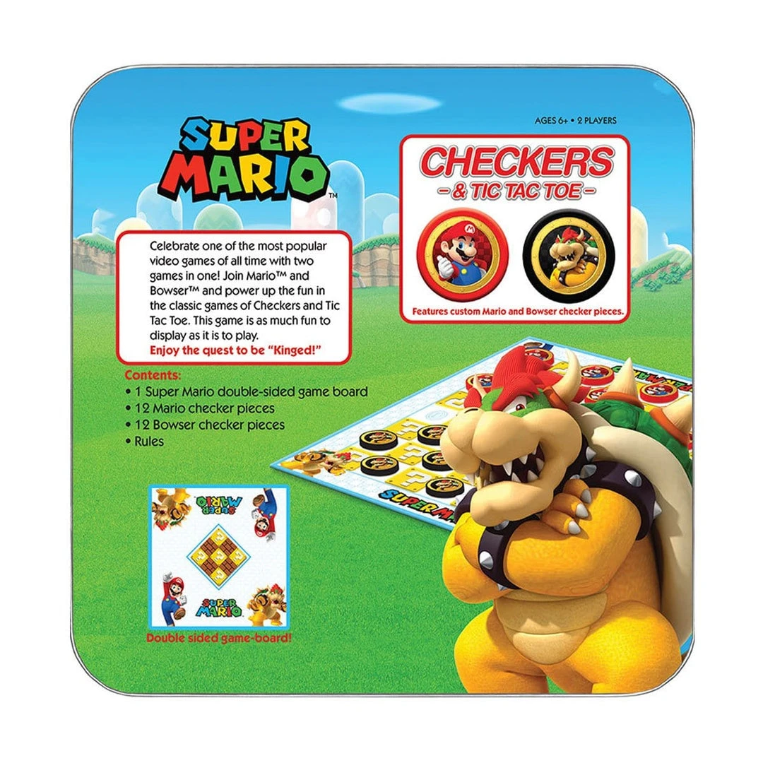 Join Mario™ and Bowser™ and celebrate one of the greatest rivalries in video games with this collectible Super Mario & Bowser Checkers / Tic-Tac-Toe set. Power up your video game collection with this fun spin on classic games – it’s as much fun to display as it is to play! The checkers set features the Mushroom Kingdom’s ultimate hero and villain in this fun twist on two classic strategy games! Leave the capturing up to Super Mario and Bowser as players jump, collect, and “King” their custom game pieces across the checkerboard. The opposite side includes a TicTacToe gameboard!