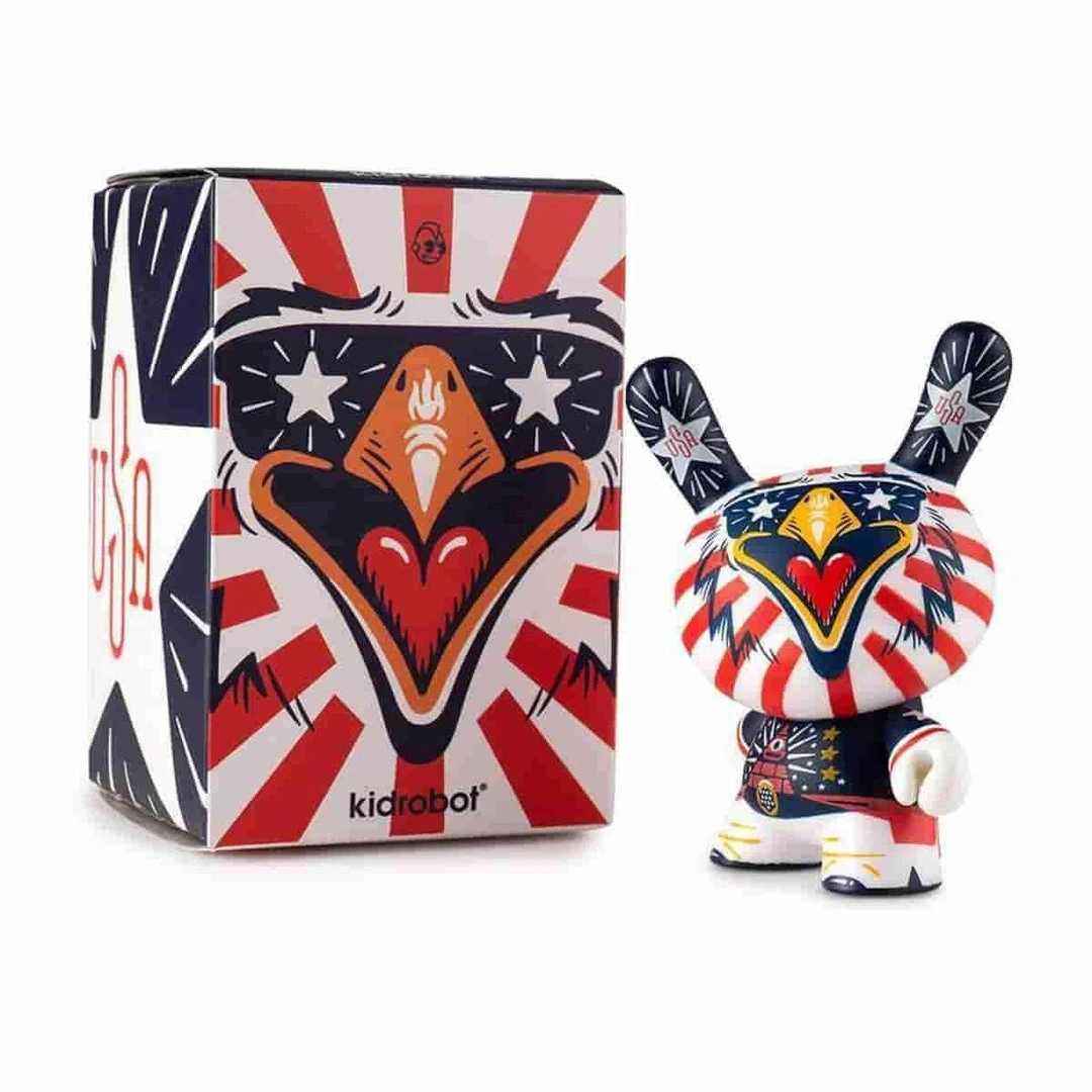 Celebrating indie spirit, Kidrobot is excited to release the limited edition 4th of July inspired Indie Eagle Dunny Art Figure by South Africa based artist KRONK!  Are you ready to soar as high as the eagles and express your freedom in red, white, and blue? IamRetro is ready to add a firework to your collection and get a little Kronk with the new 4th of July inspired Indie Eagle 3″ Dunny Art Figure. This patriotic bird of prey is ready to swoop in on the wings of freedom and add some freedom flair just in time for America’s birthday! This 3-inch tall art figure was designed by an artist from outside the USA as their take on ‘merican patriotism and celebration of Independence Day! This 4th of July themed figure is limited to 1000 pieces worldwide, so pledge your allegiance to this bad boy today!