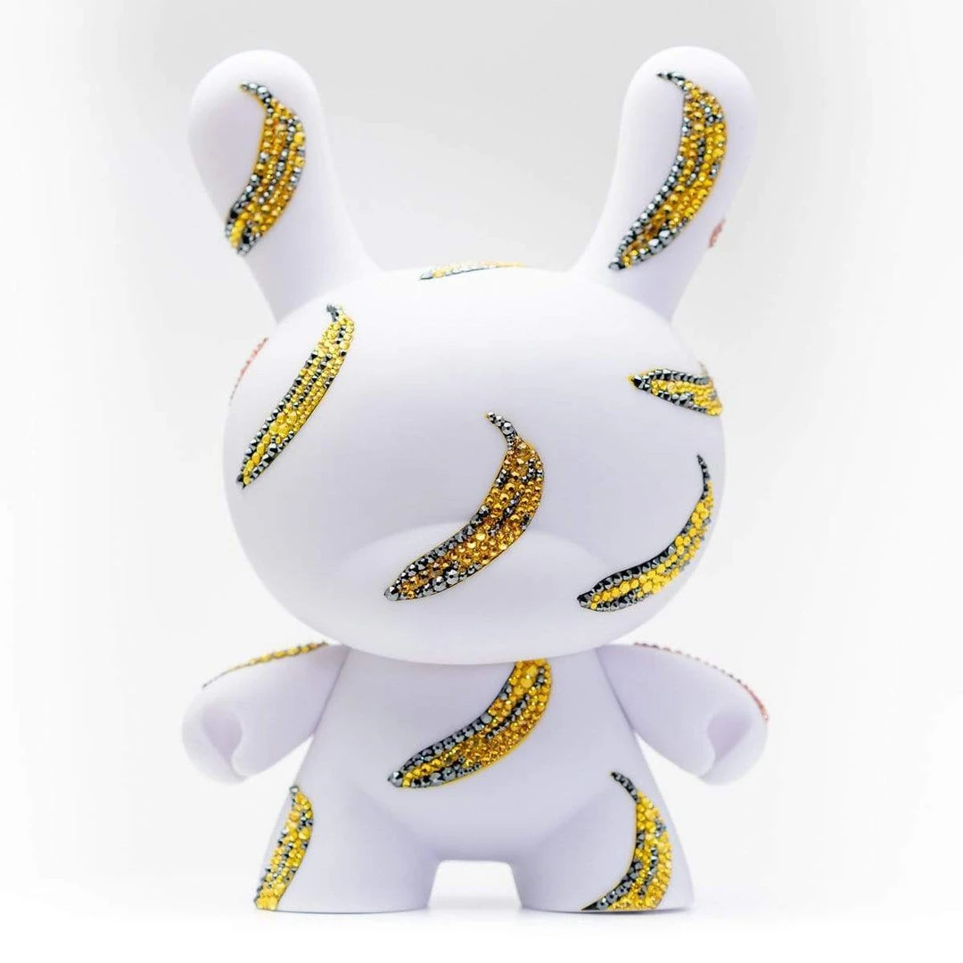 Warhol created the Banana screenprint in 1966 and later used the iconic print for his design of the debut album cover of The Velvet Underground & Nico in 1967. This Warhol icon is now reinterpreted with the Andy Warhol 8” Masterpiece Dunny with an all-over banana pattern. The banana peel was screenprinted onto laminated plastic that could be pulled off and the pink fruit was screenprinted onto the styrene and has since become a rare collector’s item as well as become one of the most recognizable pieces in pop culture.