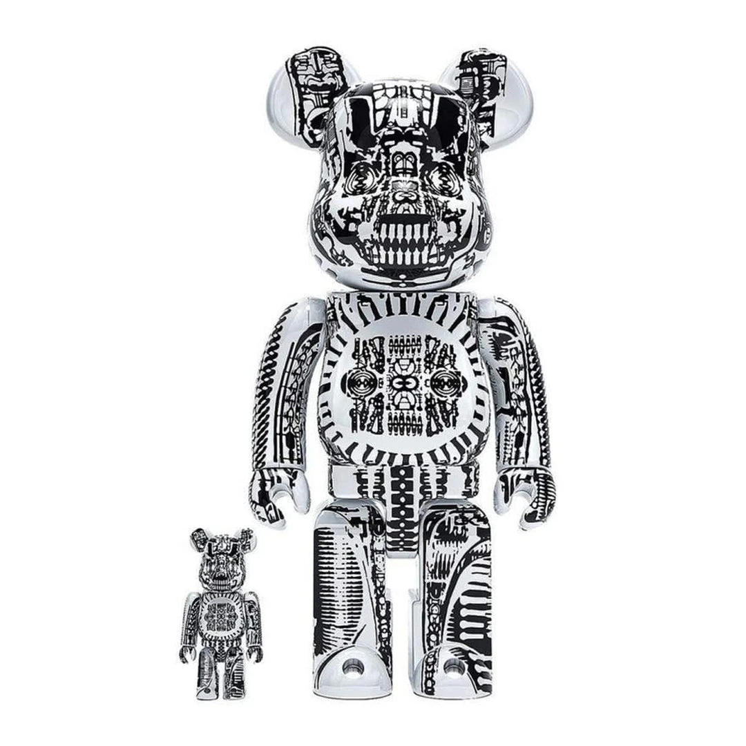 HR Giger White Chrome 400% + 100% Combo Bearbrick by Medicom