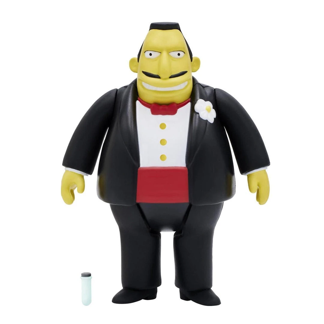 This 3.75” articulated The Simpsons ReAction figure brings back Mendoza in all of his villainous glory. He features 5 points of articulation and is packed on retro blister card packaging.
