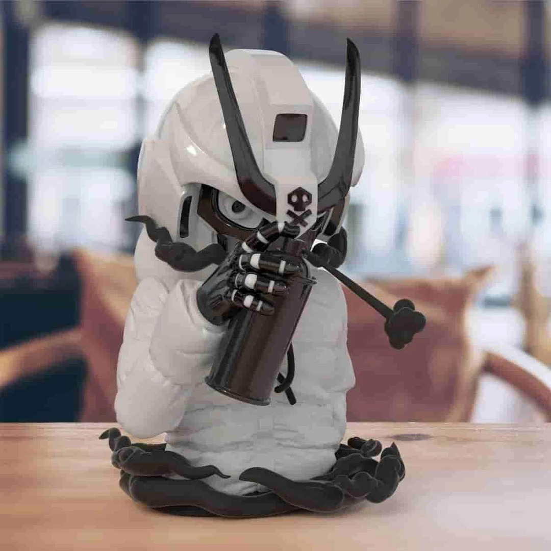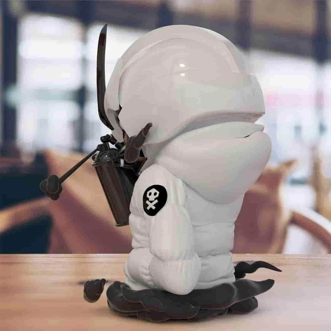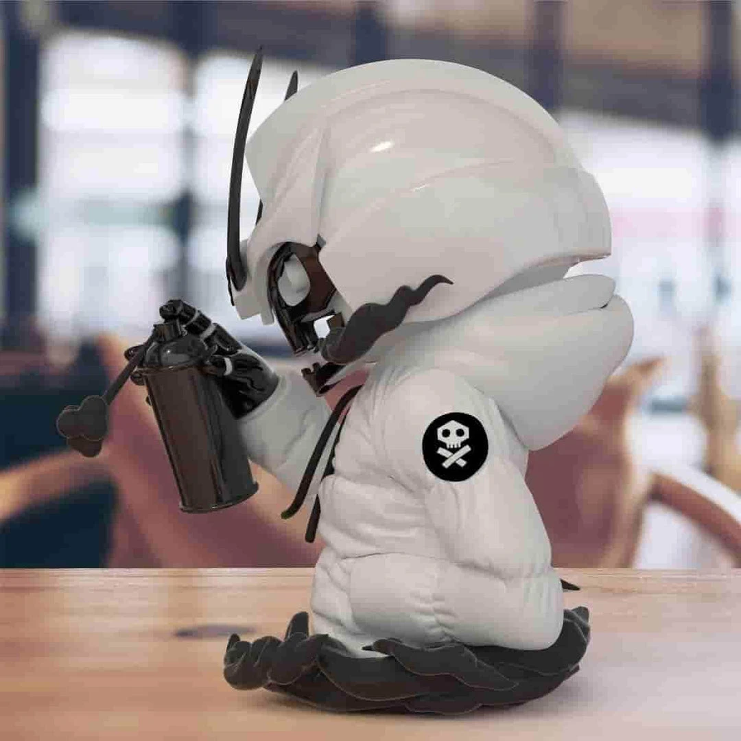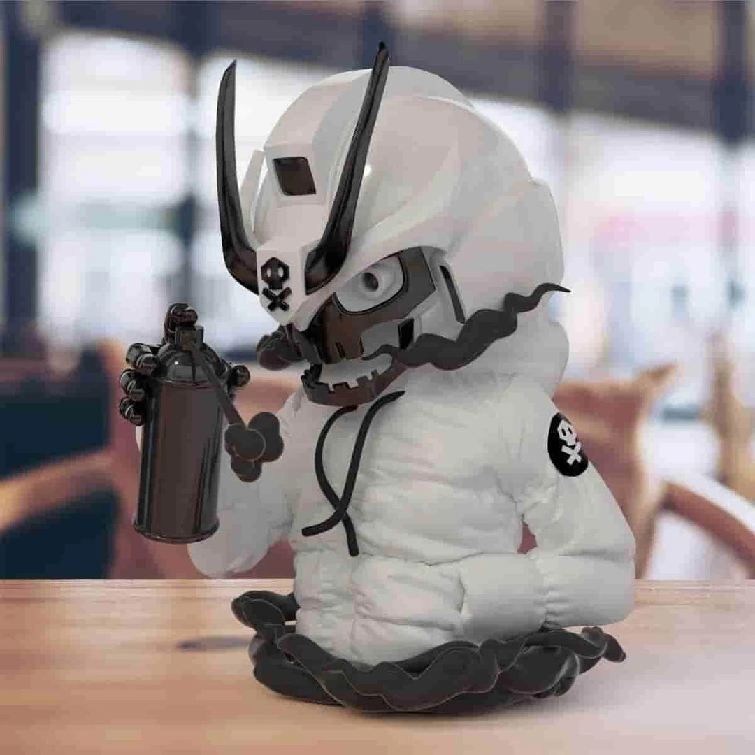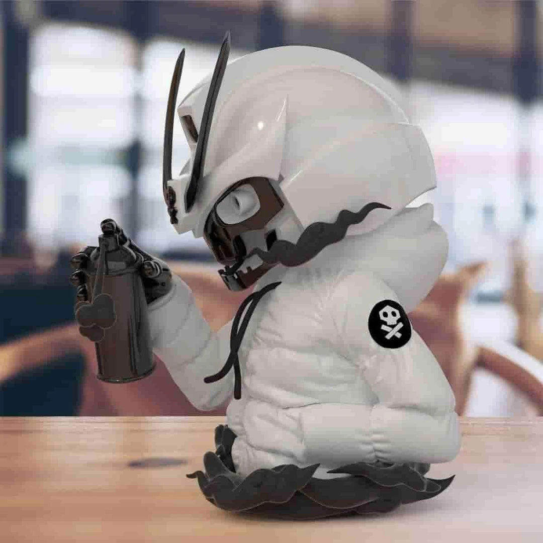 This half torso figure stands at 7.3″ inches tall and is a full vinyl production. Each Ravager will include a special authenticity card signed and numbered by the artist, @Quiccs himself. It will also include set of stickers for the spray can that you can choose to apply.