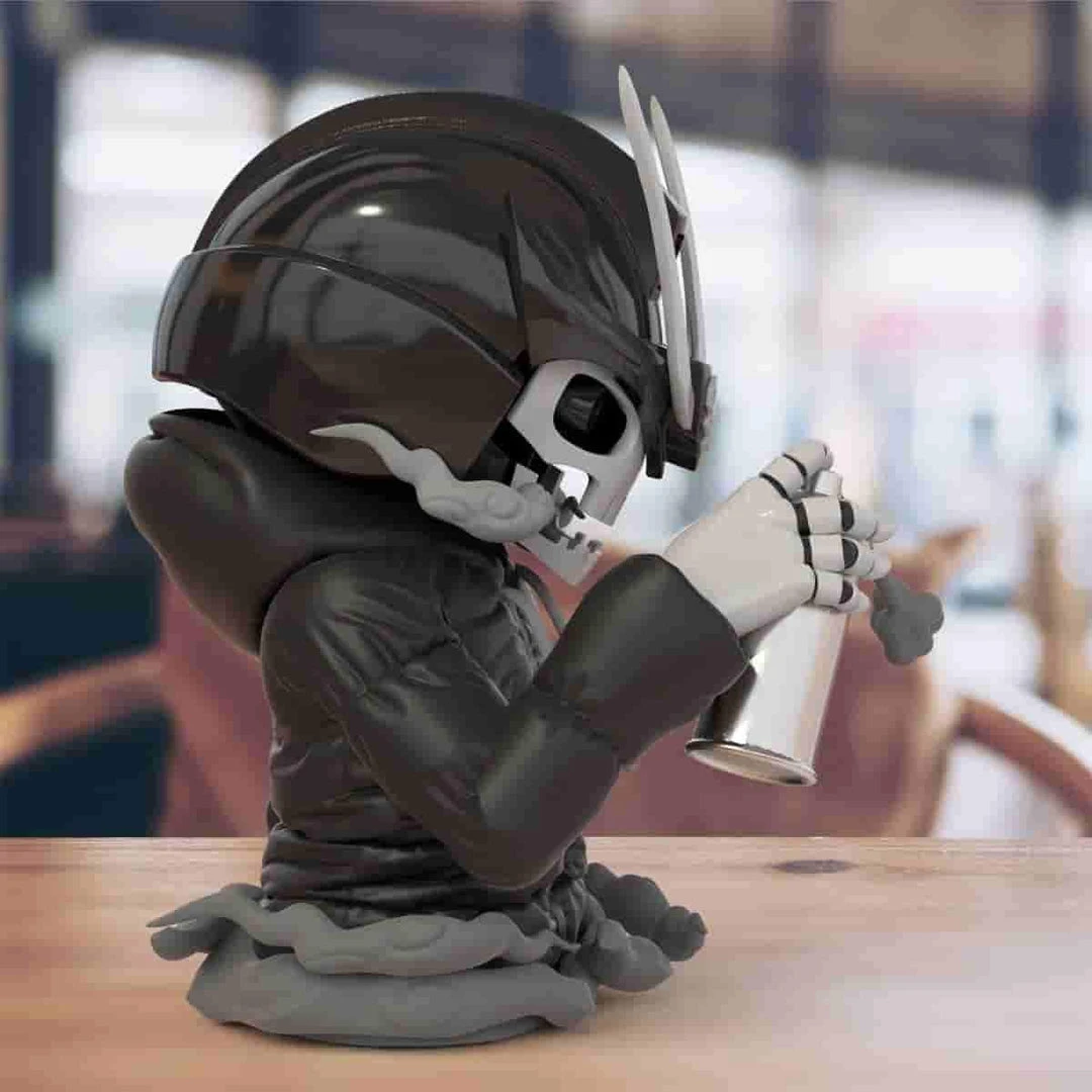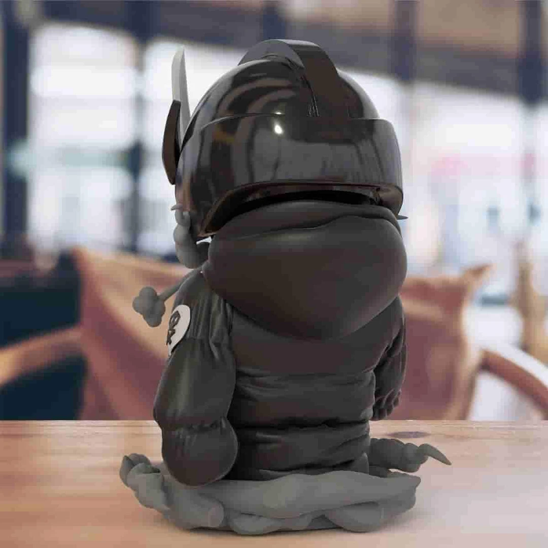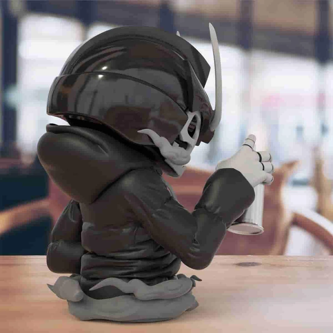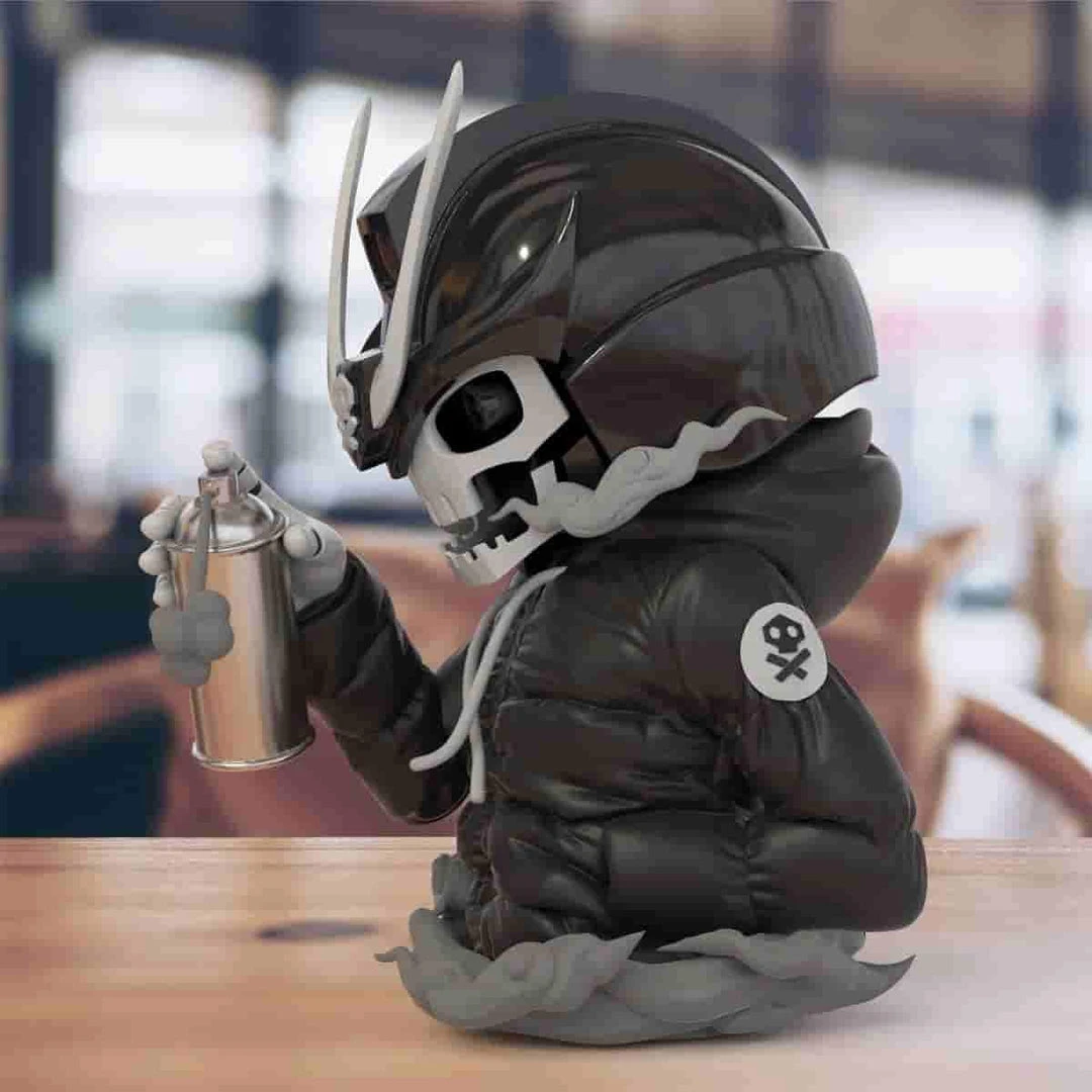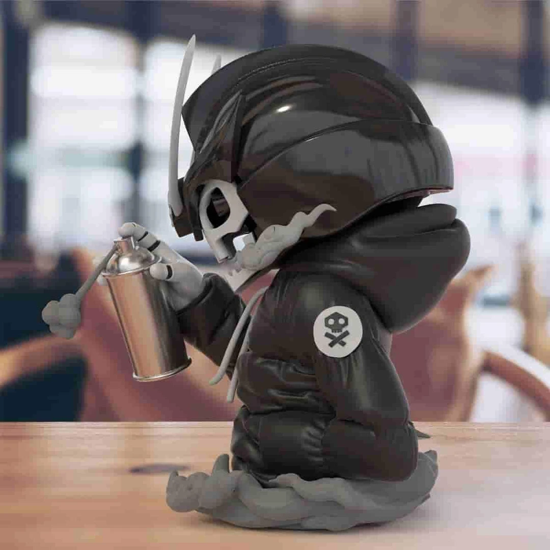 This half torso figure stands at 7.3″ inches tall and is a full vinyl production. Each Ravager will include a special authenticity card signed and numbered by the artist, @Quiccs himself. It will also include set of stickers for the spray can that you can choose to apply.