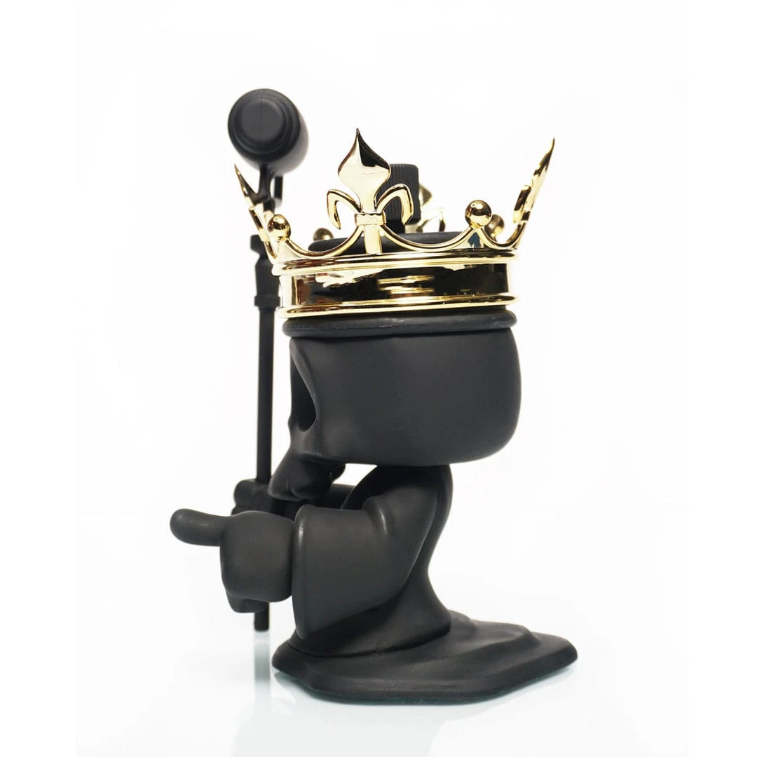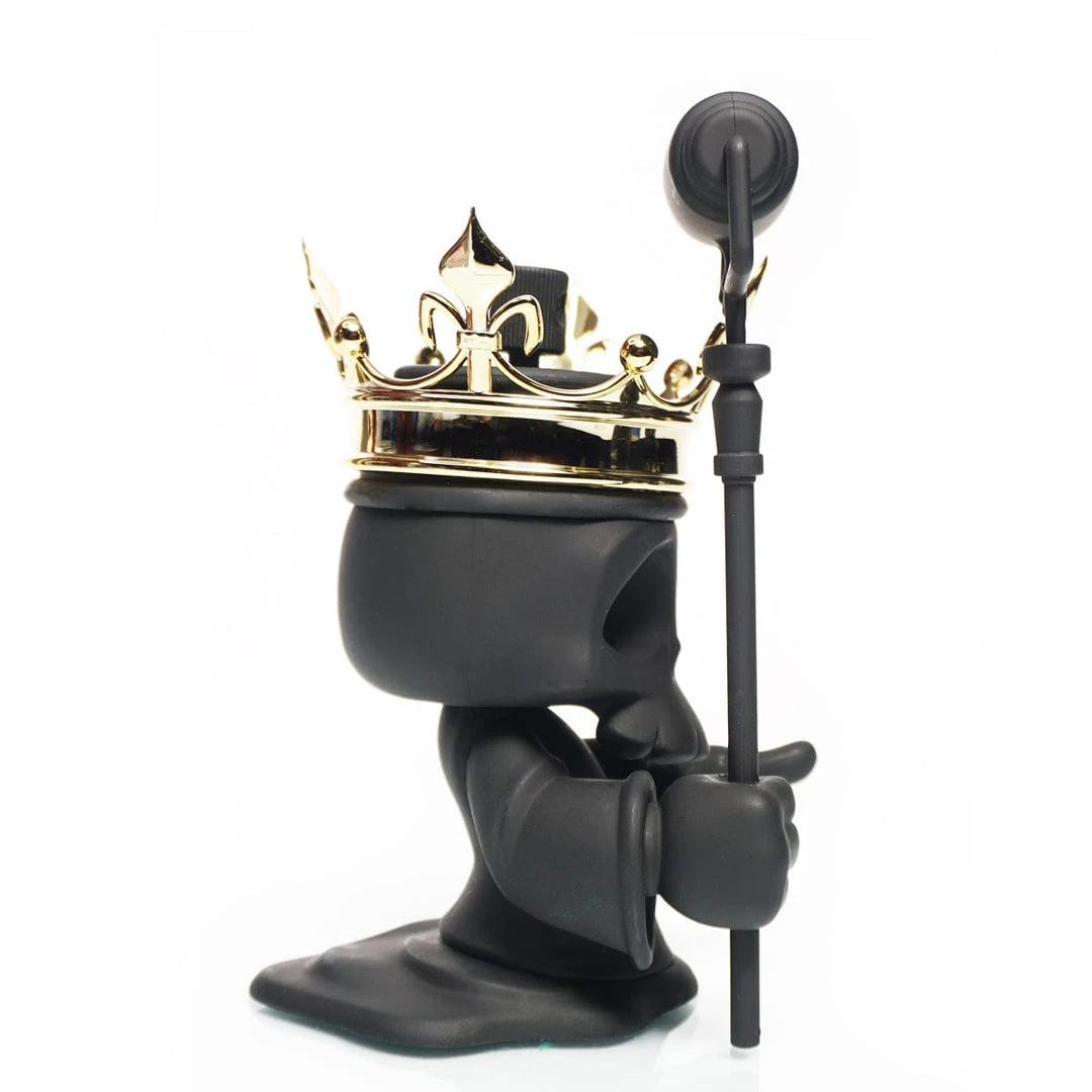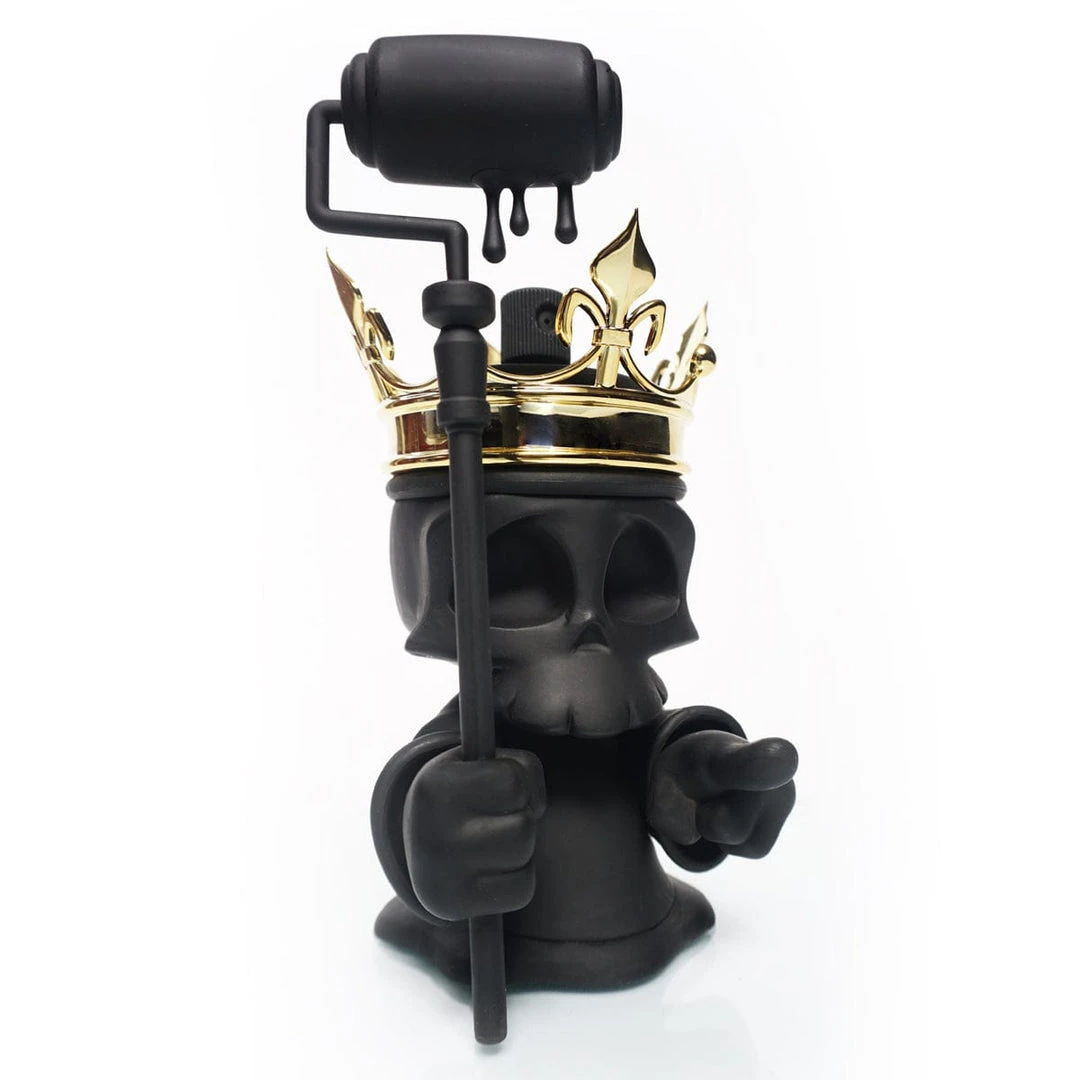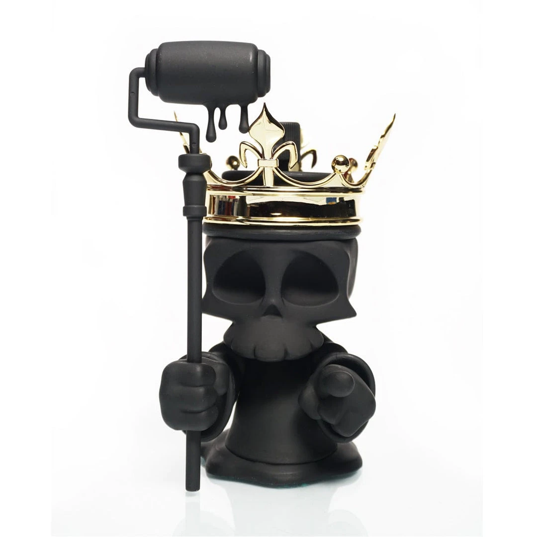 Greaper, is the reaper and collector of spent spray can souls and now it has come time to collect on a freshly designed mural debt. Black Death Greaper comes murdered out in all at black on entire body and paint roller sta accompanied with a shining gold crown only good enough for a Graffiti King.