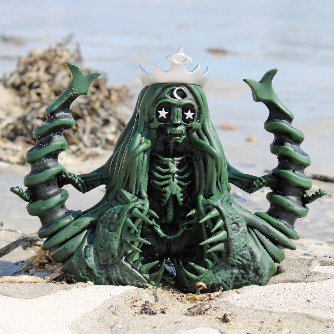 The Siren rises from the depths of the Sea, singing her songs to lure sailors, pirates and hipsters to the coffee shop by the shore. If you listen now you can hear her calling your name….”Pumpkin Spice Latte for Rico! Rico!” Accompanied by her Sea Serpents this Siren stands Tall at 6inches, 8inches Wide & 3inches Deep.