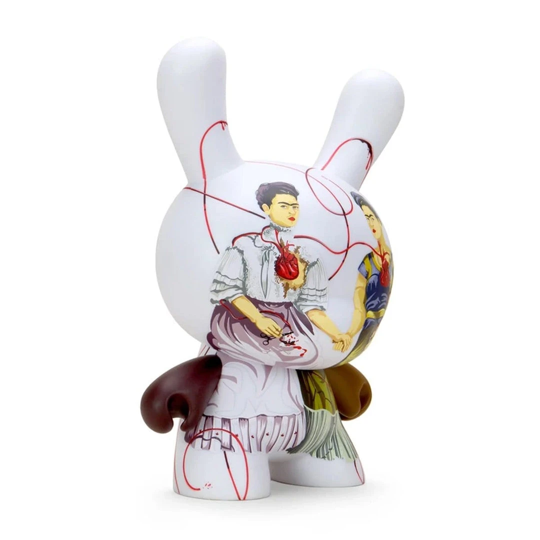 Continuing our celebration of inspirational artists of the 20th century, Kidrobot is honored to announce the start of a new collection featuring the art of Frida Kahlo. Considered one of Mexico’s greatest artists primarily for her many portraits, self-portraits, and works inspired by the nature and artifacts of Mexico, Frida Kahlo has become an icon of female creativity. Her art was inspired by Mexico’s pop culture, using a naïve folk-art style to explore questions of identity, gender, class and race in Mexican society. This Frida Kahlo 8” Masterpiece Two Fridas Dunny is the first limited edition 8” Dunny from this collection inspired by Frida’s self-portrait paintings. Coming this Summer from Kidrobot.